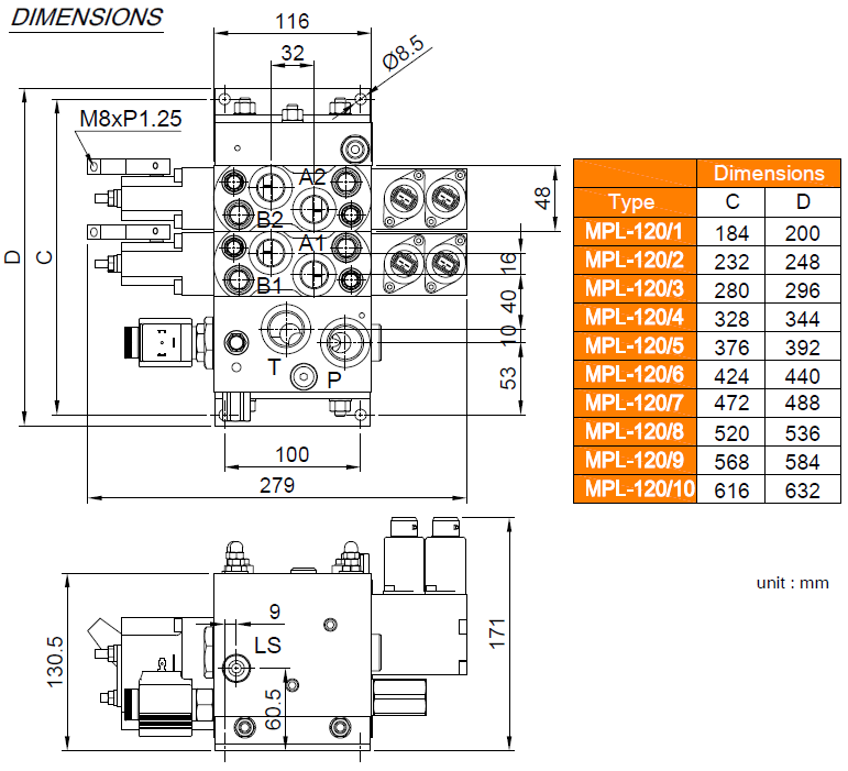 Back pressure (Max.) : 25 bar (on outlet port T )